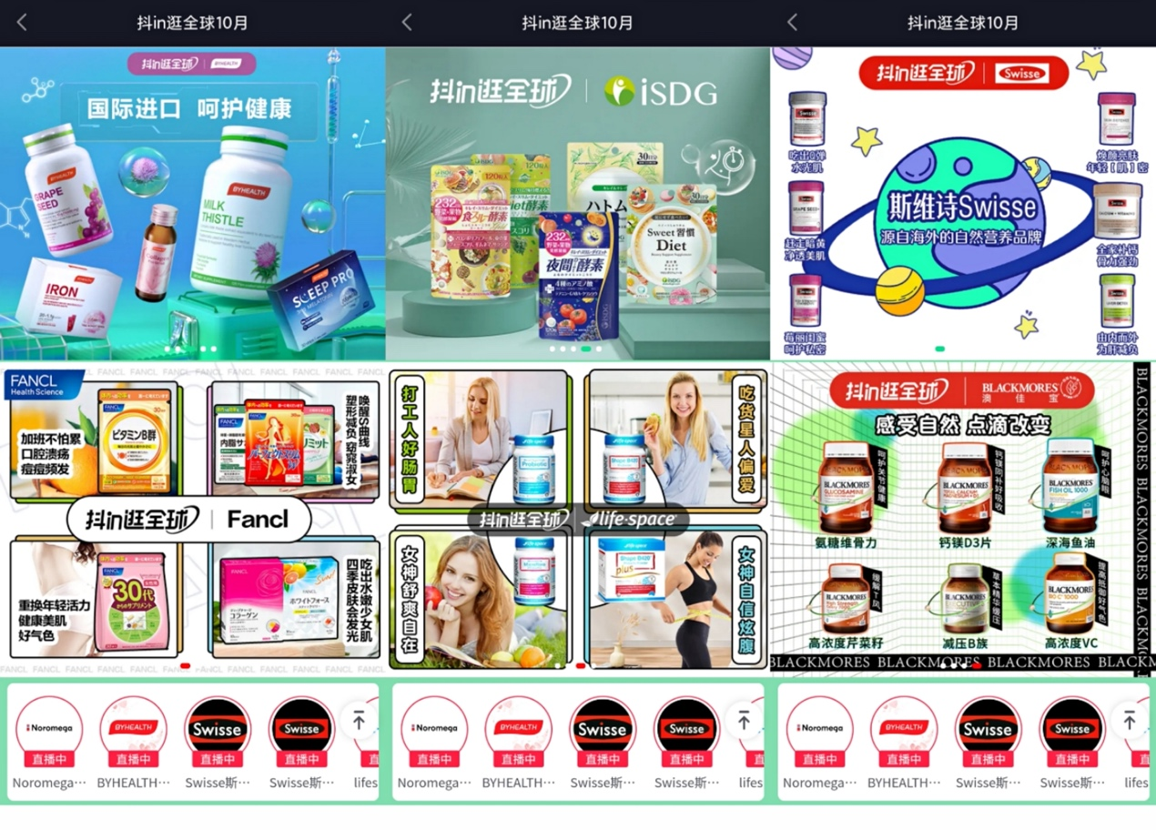 今年9月,抖音电商跨境行业推出“抖in逛全球”品牌日活动,不止海外营养品行业,还针对不同类目的特性推出特色活动,通过对用户进行全球好物讲解,让大家能感受到海外品牌新潮的商品特色和丰富的品牌文化体验,做到不出户的优惠全球买。